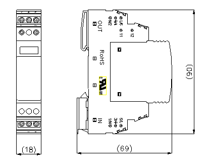 90 mm×18 mm×69 mm (Ohne Fernmeldeterminals) |